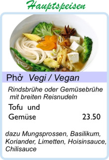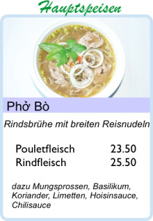 Für jeden Geschmack ist was dabei ob vegetarisch, Fleisch oder Fisch. Frische und höchste Qualität dafür steht Pho.ch